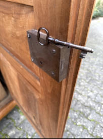 zweitürig , zwölf Kassetten-Füllungen, zerlegbar, Originale Türriegel und Schloss, Schlüssel