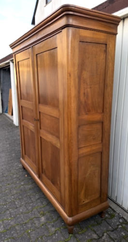 antiker Pfälzer Biedermeier Schrank, Nussbaumbaum, massiv um 1840,