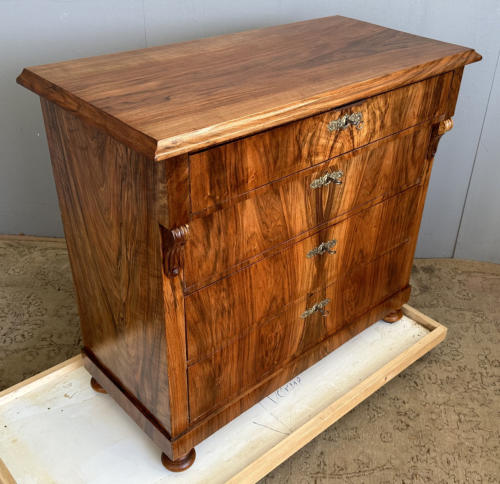 antike Gründerzeit Kommode, Nussbaum um 1880,vier Schubladen, vorsorglich wurde eine ungiftige Holzwurmbehandlung in der Wärmekammer vorgenommen, Oberfläche: Glanzlack,h=910mm b=1010mm t=480mm, Nr. 323 Verkauft Angebot 1.200,00 €Preis: 1.650,00 €